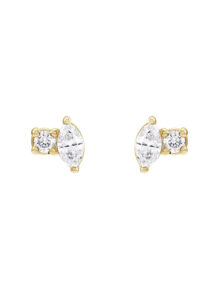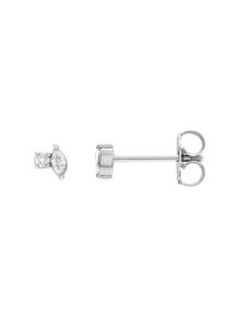 Our Toi et Moi Round & Marquise Stud Earrings offer captivating simplicity in a mixed stone shape. Featuring two natural dainty diamonds—one marquise-cut and the other round—these earrings are perfect for an ear stack look. Polished to shine, they feature easy-to-use friction backs for added convenience.
